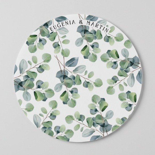 Transformá la mesa de tus invitados en una declaración de estilo. Individuales Personalizados Redondos de 32 cm de diámetro, impresos en Papel Opalina Liso de 210 Grs o de 300 Grs. Ideal para bodas al aire libre, eventos boho, celebraciones rústicas elegantes o parejas que buscan un detalle de mesa completamente personalizable.