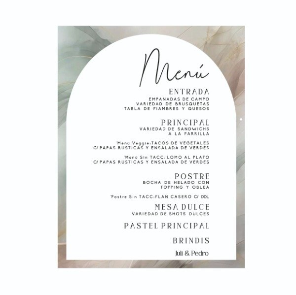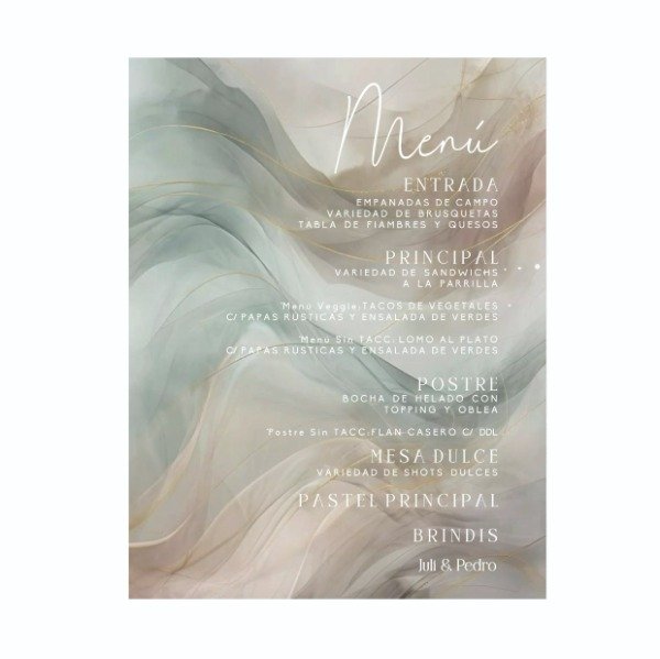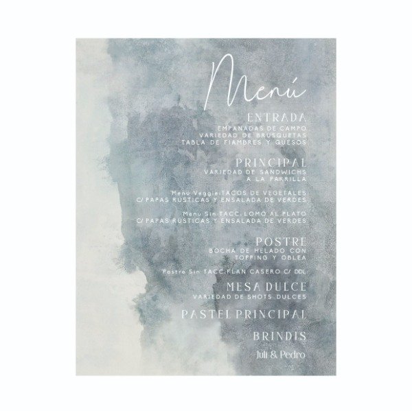 Transformá la mesa de tus invitados en una declaración de estilo. Tarjeta de Menú impresa en Papel Opalina Liso o Papel Texturado Premium. Ideal para bodas al aire libre, eventos boho, celebraciones rústicas elegantes o parejas que buscan un detalle de mesa completamente personalizable. Adaptamos el contenido del menú, los colores de la tipografía y el nombre de los novios.