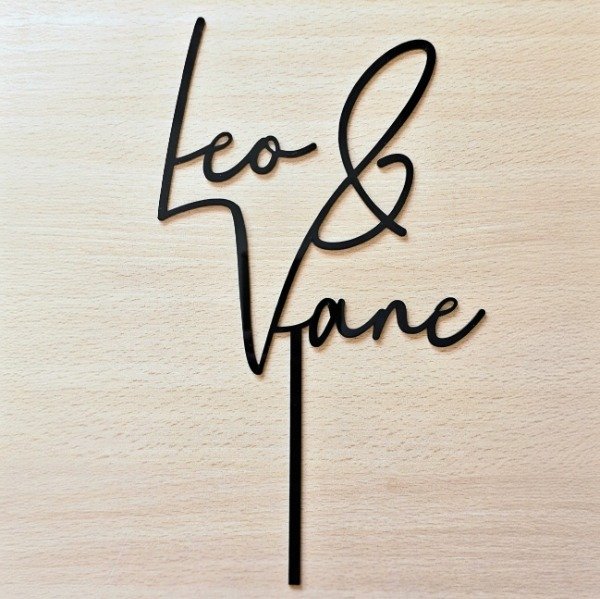 Topper de torta personalizado perfecto para bodas, aniversarios, compromisos o cualquier festejo. Es un artículo hecho a medida fabricado en acrílico de alta calidad (disponible en color negro como el de la imagen, o en opciones espejo como dorado, plateado o rosa gold) que proporciona una apariencia moderna, nítida y sofisticada.